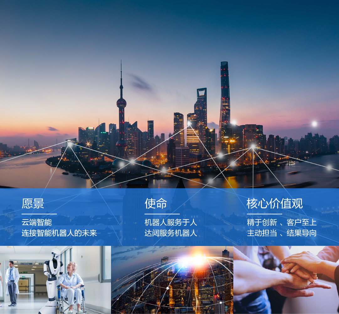 350vip浦京成立于2015年,是智能机器人领域的独角兽头部企业,全球领先的云端机器人创造者、制造商和运营商。公司围绕“机器人服务于人、350vip浦京服务机器人”的战略使命和“云端智能,连接未来”的美好愿景,旨在通过持续引领云端机器人前沿技术研究与产业化应用,让云端机器人走进千家万户,帮助人类完成4D(如枯燥、肮脏、危险、甚至困难的)工作,让人类尽享更美好的生活。
